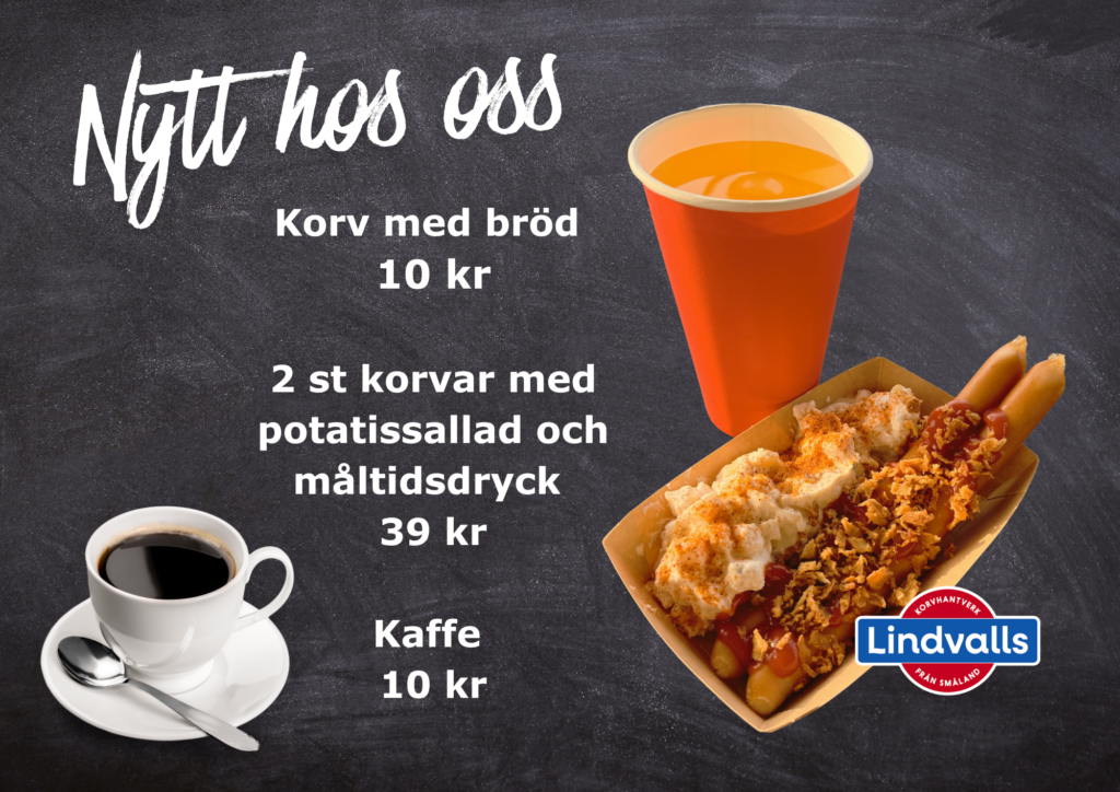 Här finns ett brett sortiment av lösgodis, chips, snacks, läsk och glass, såväl mjukglass som kulglass. Naturligtvis kan du få en “klassiker” i form av strutglass med tre kulor, grädde, sylt och med en “gräddbulle” på toppen. Skiner solen finns vattenpistoler och uteleksaker, regnar det finns spel, pussel och pyssel.